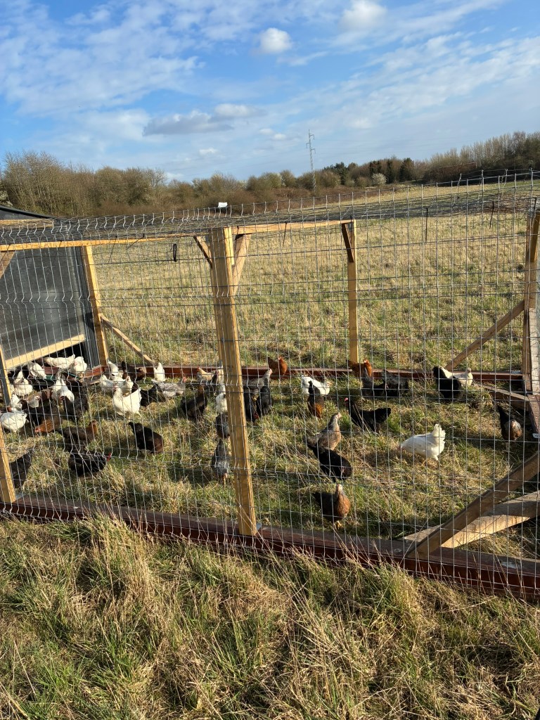I foråret 2026 stater vi en produktion af græskyllinger. Vi må ikke kalde vores kyllinger økologiske, selvom de er økologiske (foder og jorden, hvor de lever, fordi vi ikke må have samtidig drift af økologiske dyr og ikke-økologiske dyr af samme art. Vores høns er taget ud af øko-mærkningen, som du kan læse her over.